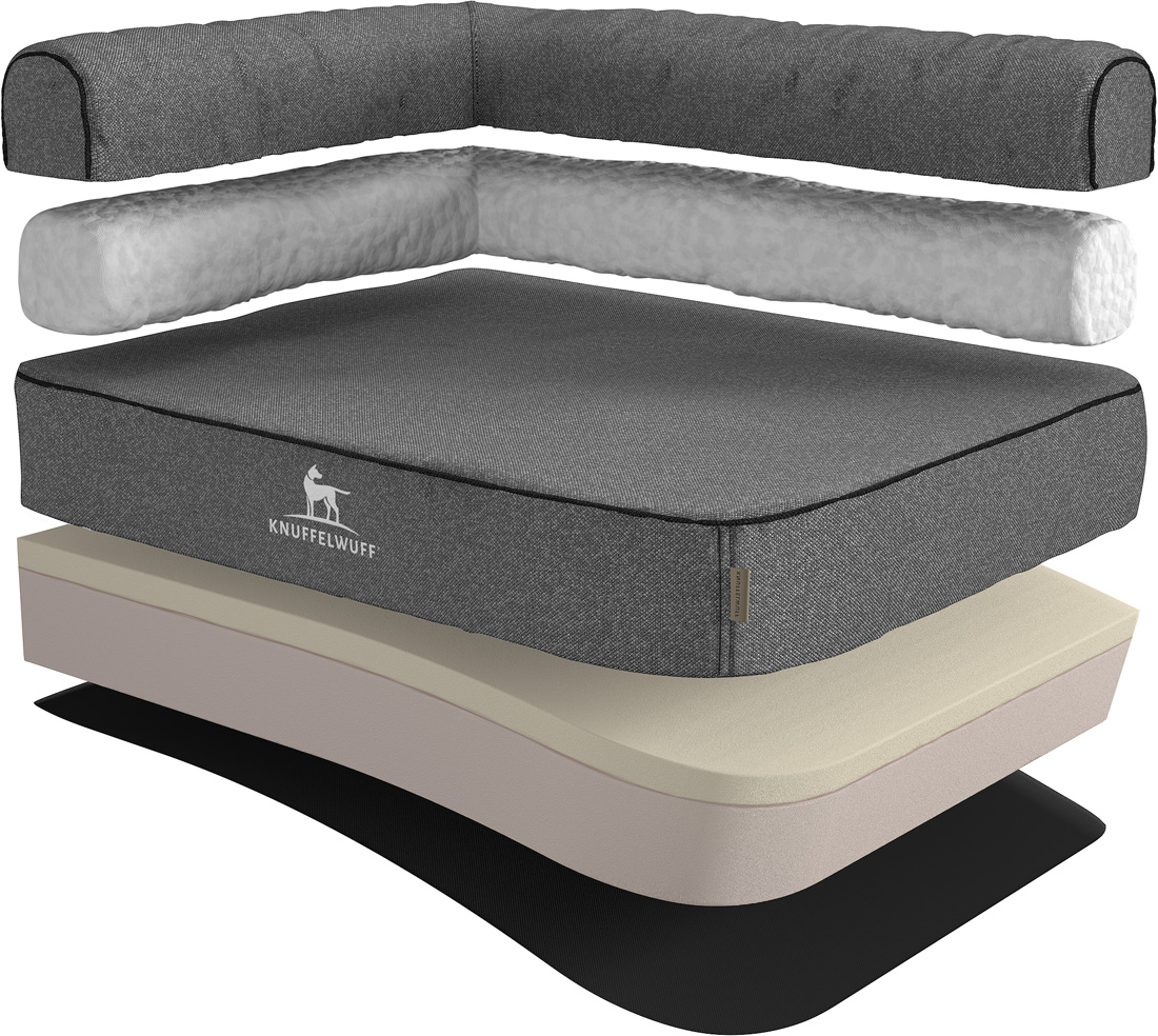 Knuffelwuff | Orthopädisches Eck Hundebett Marlie | Ergonomisch | Hundematratze | Memory Foam